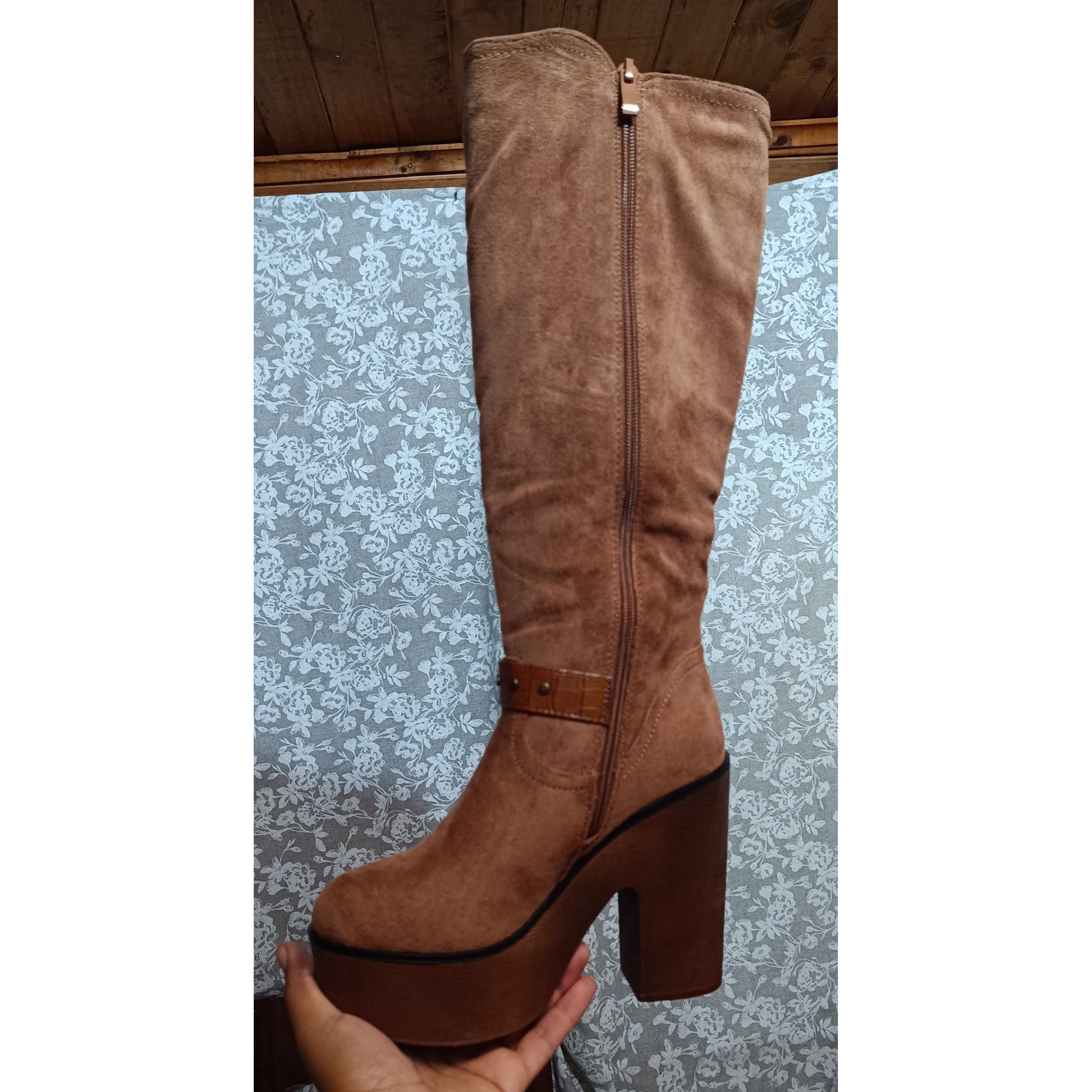 ¡Con estilo y peso ligero, ponte esta cómoda bota para mujer! El tacón de 10 cm y la plataforma de 4 cm le darán un impulso a tu paso, mientras que el material de gamuza de lujo mantendrá tus pies cómodos todo el día. ¡Con un ajuste clásico, estas bellezas son perfectas para cualquier ocasión!