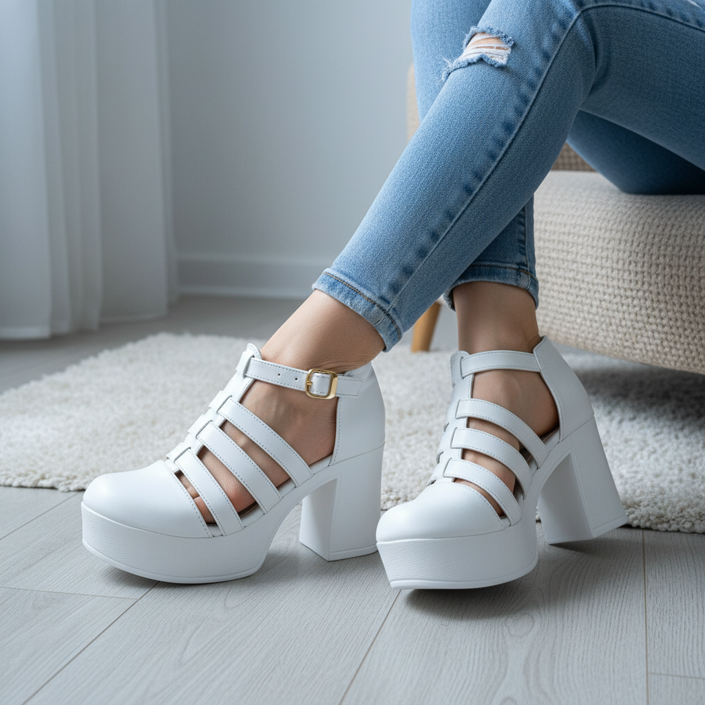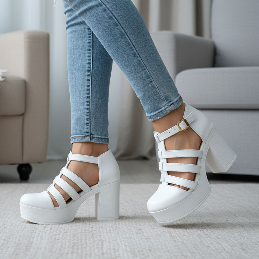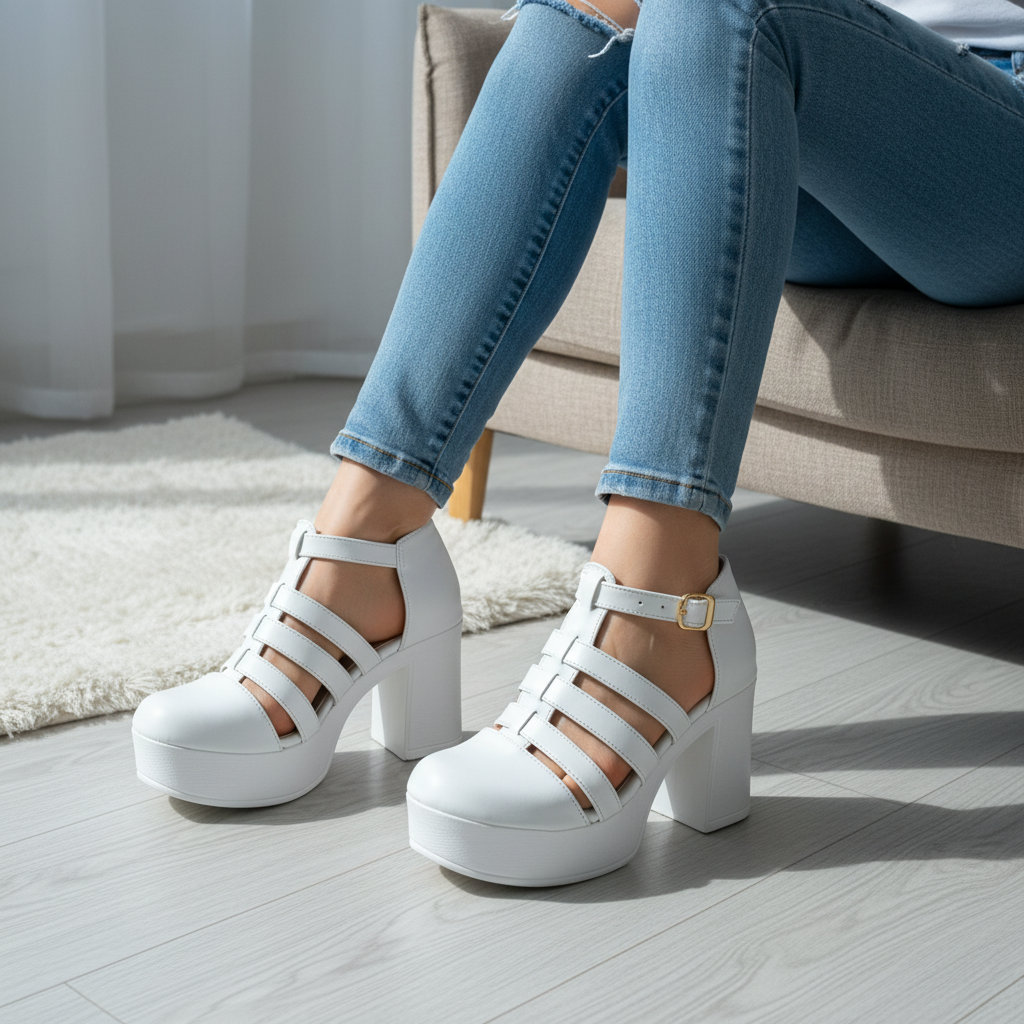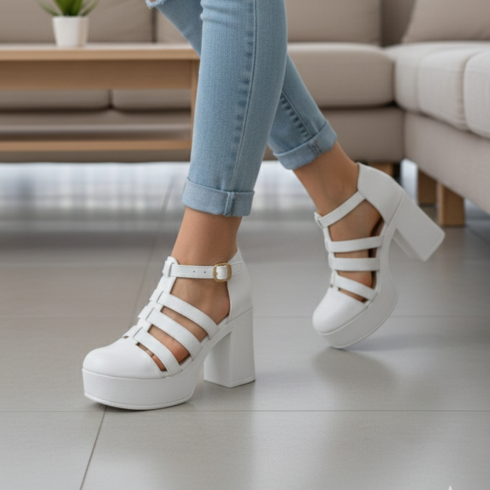 Sandalias altas, pero supercómodas, su diseño está pensado para un uso por largas jornadas, un taco alto y con plataforma con la intención de entregarte comodidad y belleza.